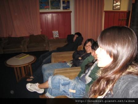 我們在Living room觀賞Youjin & Seah在QT跳Bungy Jump的VCD